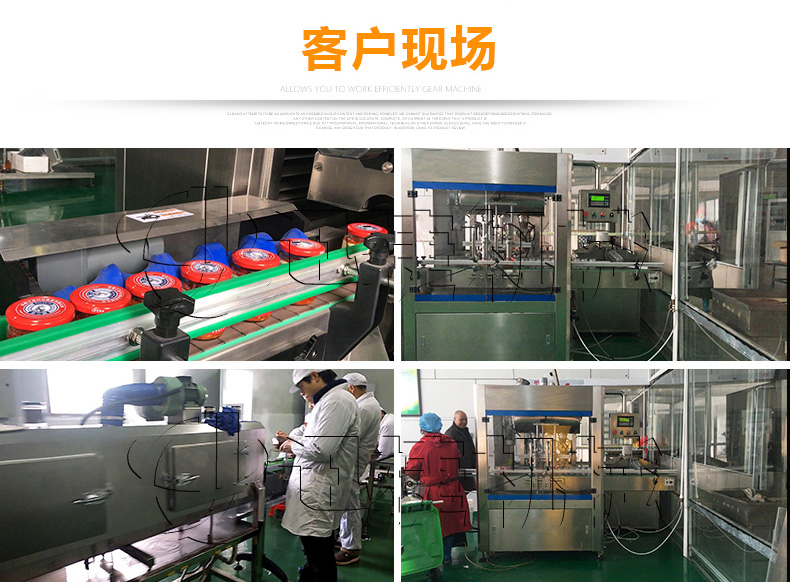 該生產(chǎn)線(xiàn)適合中小口徑三旋、四旋玻璃瓶調(diào)味醬的分裝,適合醬料、含顆粒黏稠物料的灌裝,物料接觸部分均采用316不銹鋼,整機(jī)304不銹鋼,符合食品衛(wèi)生標(biāo)準(zhǔn)。該機(jī)設(shè)計(jì)合理,機(jī)型小巧,立式結(jié)構(gòu),節(jié)省場(chǎng)地,操作方便。啟動(dòng)部分均采用FESTO和臺(tái)灣AirTack的氣動(dòng)元件。灌裝閥有氣動(dòng)閥控制,灌裝精度更高,灌裝量和灌裝速度均可任意調(diào)整,灌裝悶頭采用防拉絲及升降灌裝裝置。