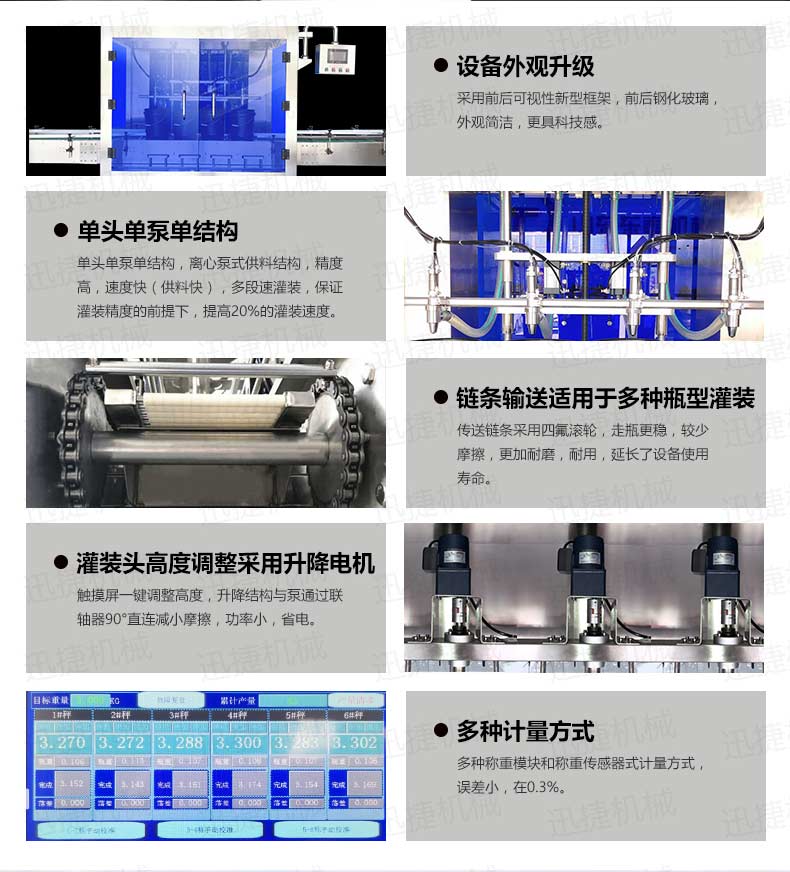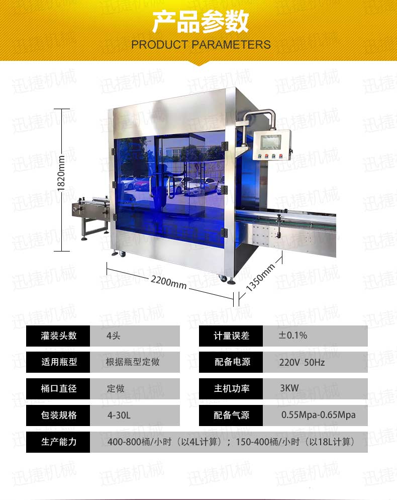 機油灌裝機適用于對4kg-25kg汽車用品類產(chǎn)品:潤滑油、防凍液、車用尿素等液體灌裝。自動完成計數(shù)進瓶、計重量灌裝、輸送出瓶等一系列操作。 特別適用于潤滑油、水劑、食用油的定量灌裝,是食品,醫(yī)藥,化妝品以及精細化工等行業(yè)的理想灌裝機。本機采用可編程控制器(PLC)、高速工控組態(tài)軟件進行實時監(jiān)控的控制,使用調(diào)節(jié)方便。整機按GMP標準要求制作,各管路連接采用快裝方式,拆卸清洗方便,與物料接觸部位及外露部位均采用不銹鋼制造。整機安全、環(huán)保、安全、美觀、能適應(yīng)各種不同環(huán)境工作。