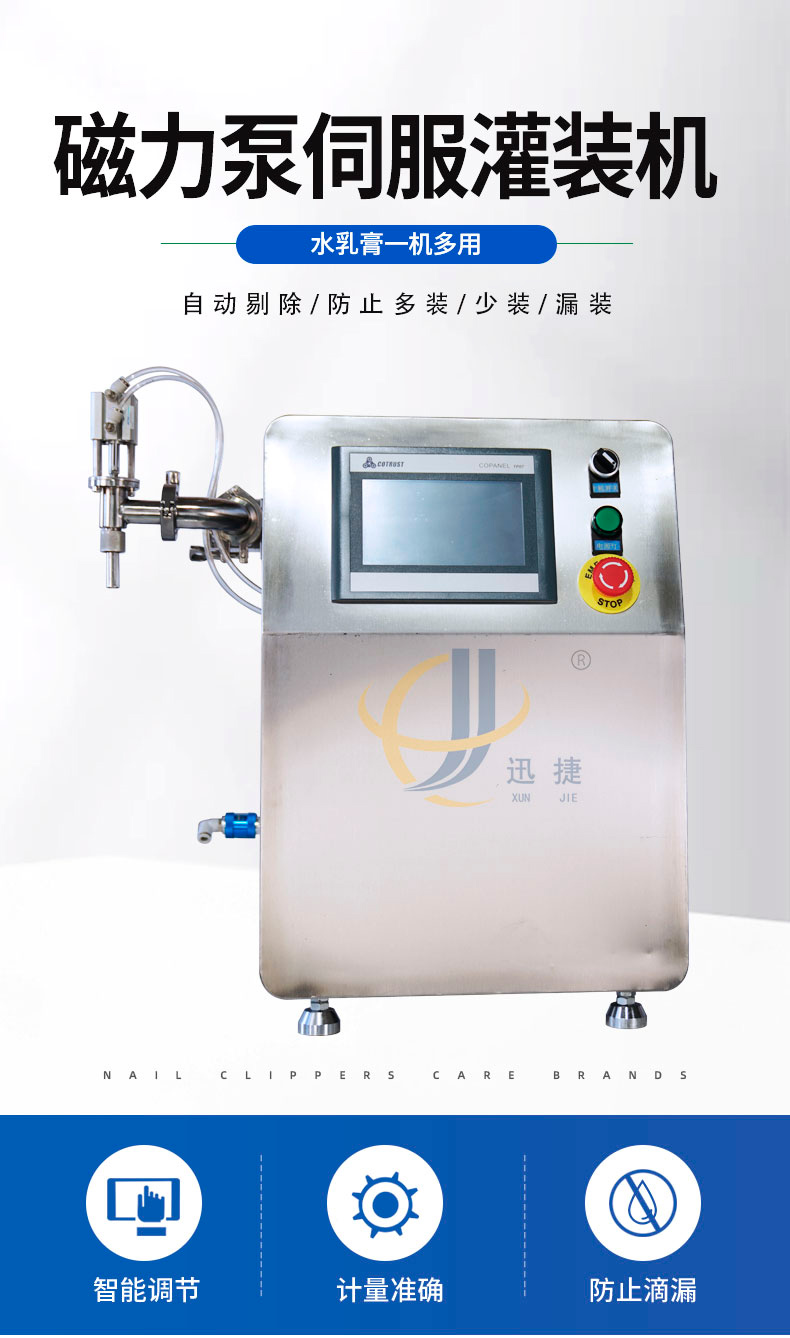 1.本機(jī)采用伺服電機(jī)驅(qū)動(dòng),PLC和觸摸屏控制,316L材質(zhì)齒輪泵灌裝原理,適合日化、醫(yī)藥、食品、油脂等各類流體和半流體物料定量灌裝。2.灌裝量通過觸摸屏調(diào)節(jié),灌裝量調(diào)節(jié)無上限,泵頭易拆裝易清洗,非常適合產(chǎn)品種類多,需要經(jīng)常調(diào)節(jié)范圍的用戶。3.計(jì)量準(zhǔn)確,灌裝100ML,可以實(shí)現(xiàn)不大于0.5ML的誤差。