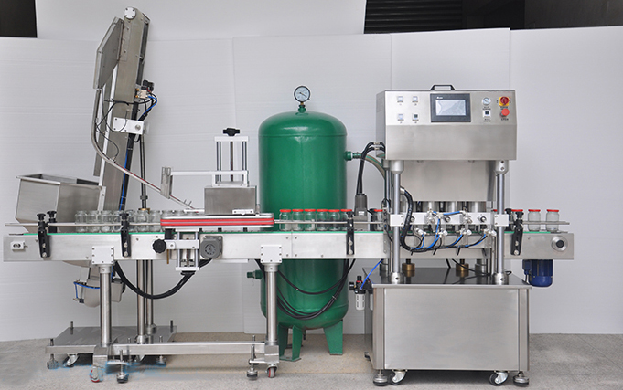 全自動(dòng)直線式真空旋蓋機(jī)采用世界知名工廠電器和氣動(dòng)元件,故障率低,性能穩(wěn)定可靠,使用壽命長,主要用于玻璃瓶馬口鐵蓋的灌裝。