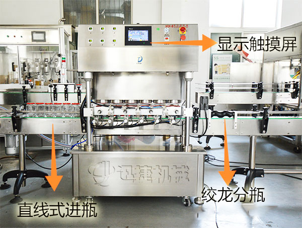 2、精確的絞龍分瓶機構(gòu)和擋瓶系統(tǒng),保證瓶子定位精確無誤,確保旋蓋效果。