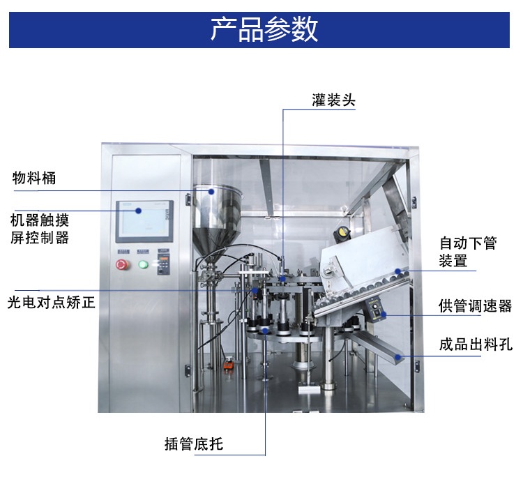 順利準(zhǔn)確地注入軟管中,并完成管內(nèi)熱風(fēng)加熱、封尾和打批號、生產(chǎn)日期等。